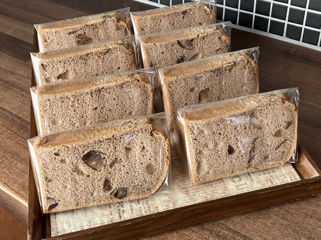 たっぷりの栗ピューレを入れた生地に栗の渋皮煮も入れた栗感満載シフォン