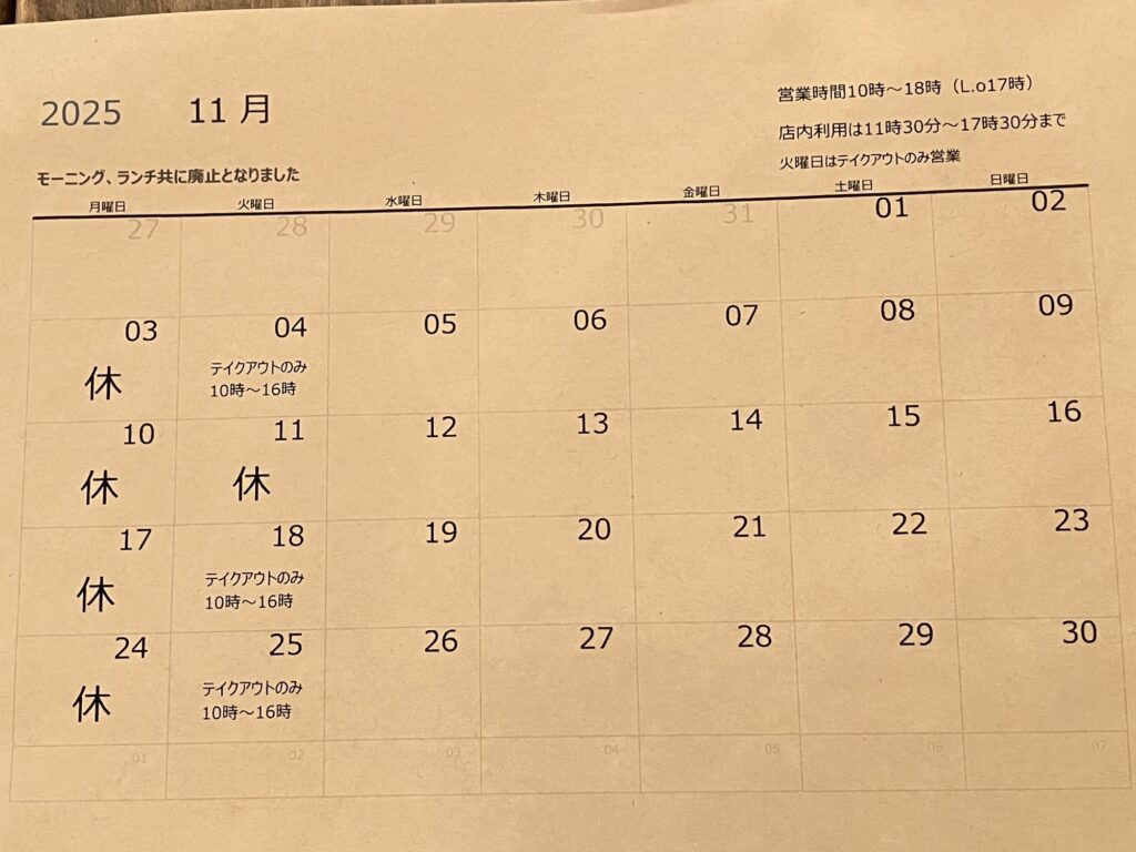 テイクアウトのみ(11日以外の火曜日)10時〜16時