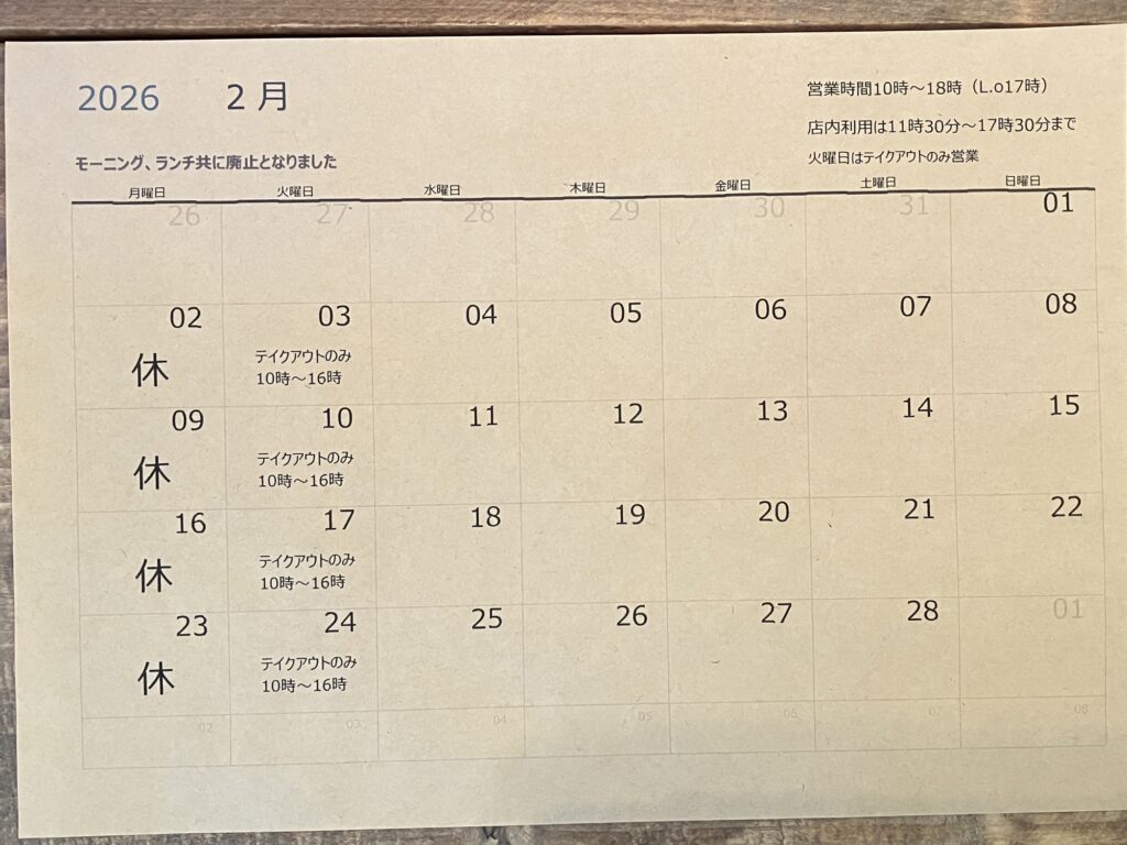 2月の営業予定と限定シフォンのご案内です