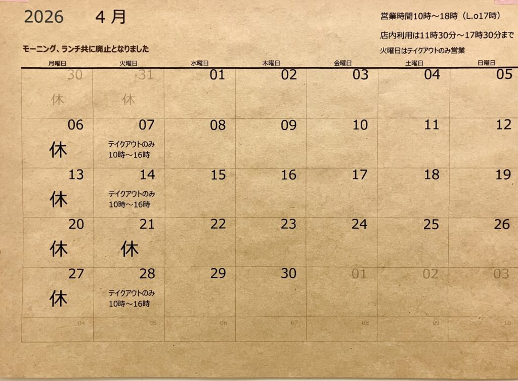 4月の営業予定と限定シフォン